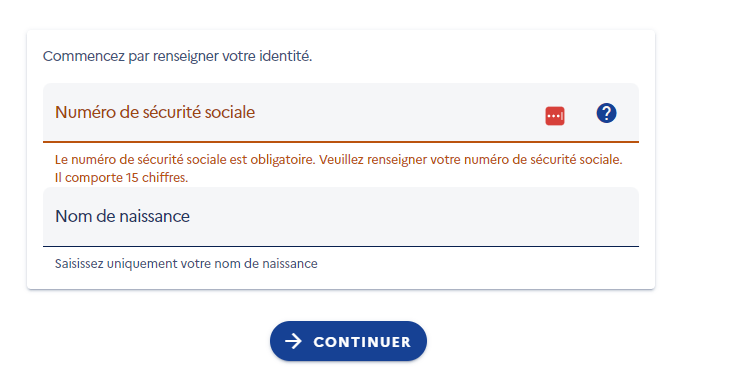 Attention il faut être en possession de votre numéro de sécurité sociale.